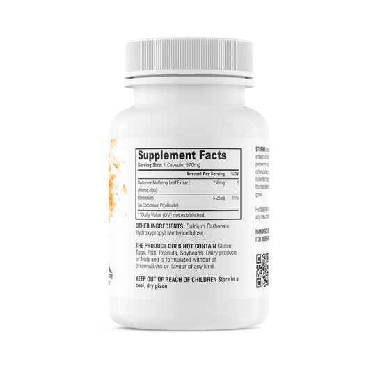 STORMe stands out with its special approach to health. Our Blood Sugar supplement uses Reducose, a unique mulberry leaf extract, proven to lower blood sugar and insulin levels. This helps keep your blood sugar steady and reduces sugar spikes.